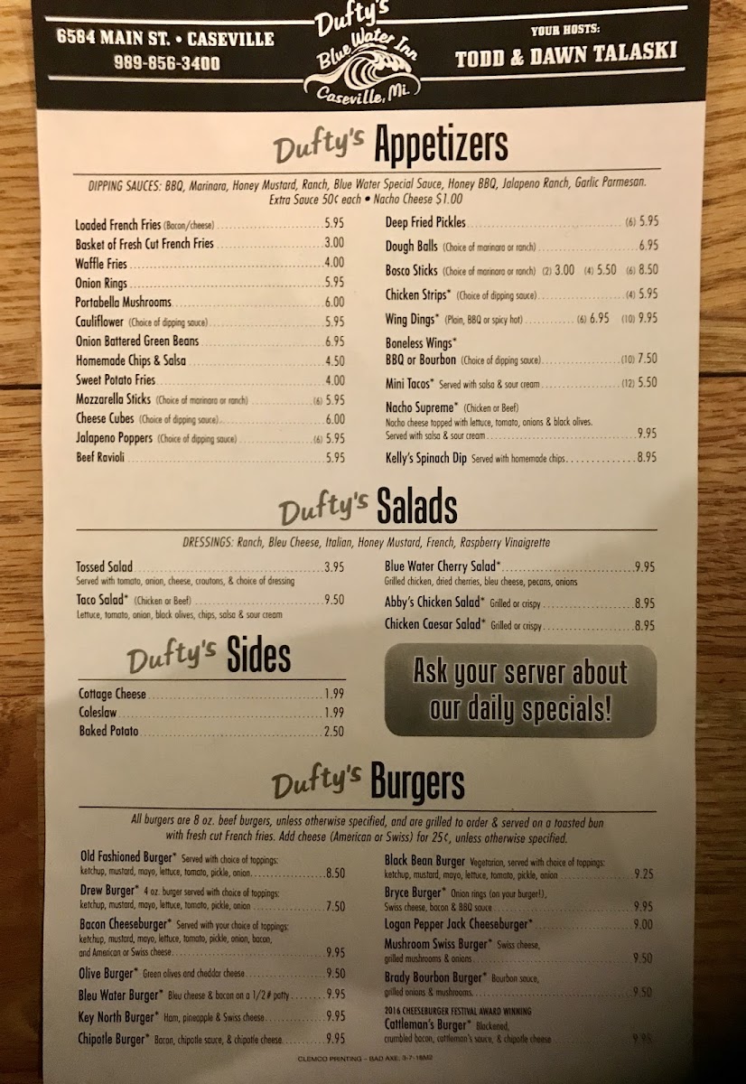 Welcome to Blue Water Inn, a beloved gem nestled in Caseville, Michigan, at 6584 Main St. This charming venue is renowned for its homemade food that transcends typical bar offerings. The menu showcases a mouthwatering selection, including a delightful 14-inch Cheese Pizza and an array of creative kids' meals, all priced at just $6.00.